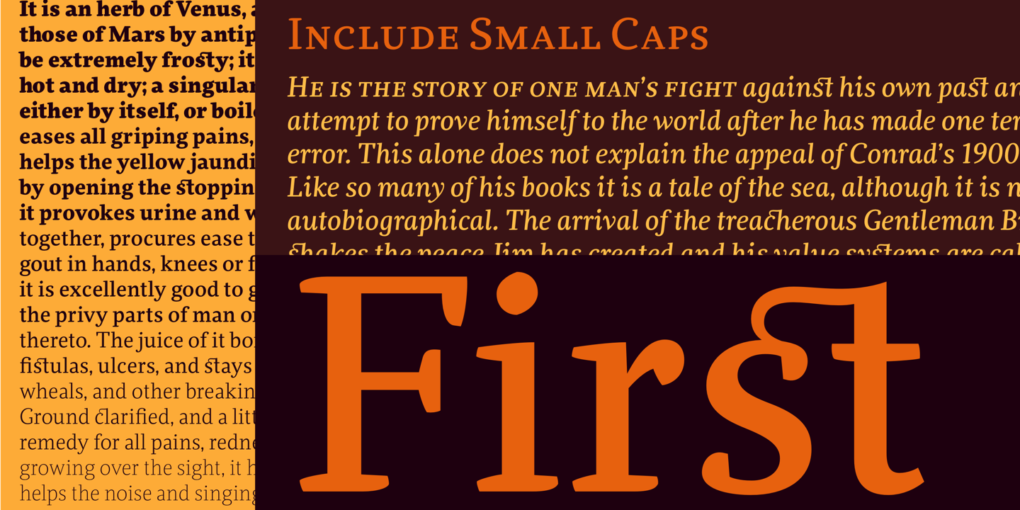 Clavo is the third font family from Warsaw’s Dada Studio. Its approach to the contemporary oldstyle genre is somewhat similar to Ludwig Übele’s Marat or Elena Albertoni’s Acuta (while being in no way an imitation). With its distinctive shapes, pronounced serifs and marked transitions, it has an animated energy about it that makes it stand out at display sizes. When used in smaller texts, Clavo is attractive and flexible, with proportions that are easy on the eye and help immersive reading. It comes in ten weights with matching italics, carefully adjusted for optical harmony. With a large set of numerals, small capitals, fractions and other OpenType goodies, it’s a bargain at its full price… and almost too good to be true at its current 90% discount, valid through July 28, 2013!