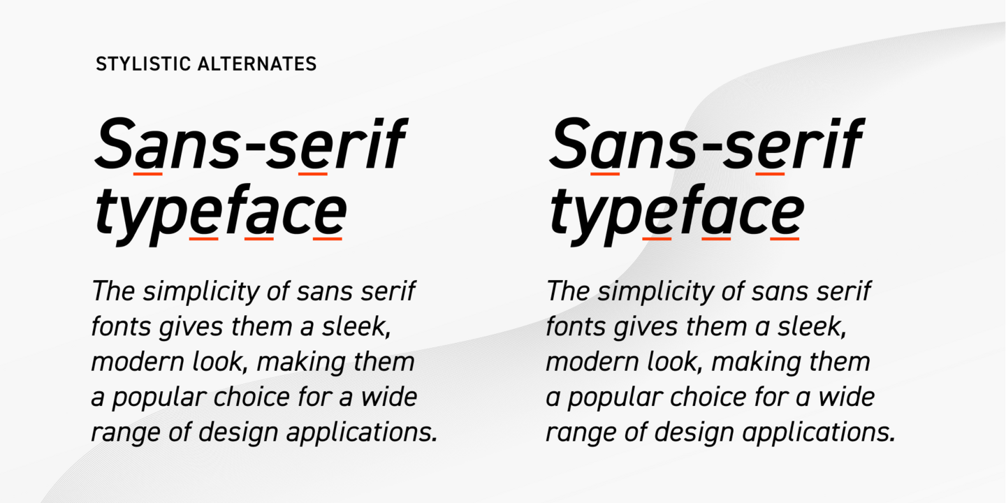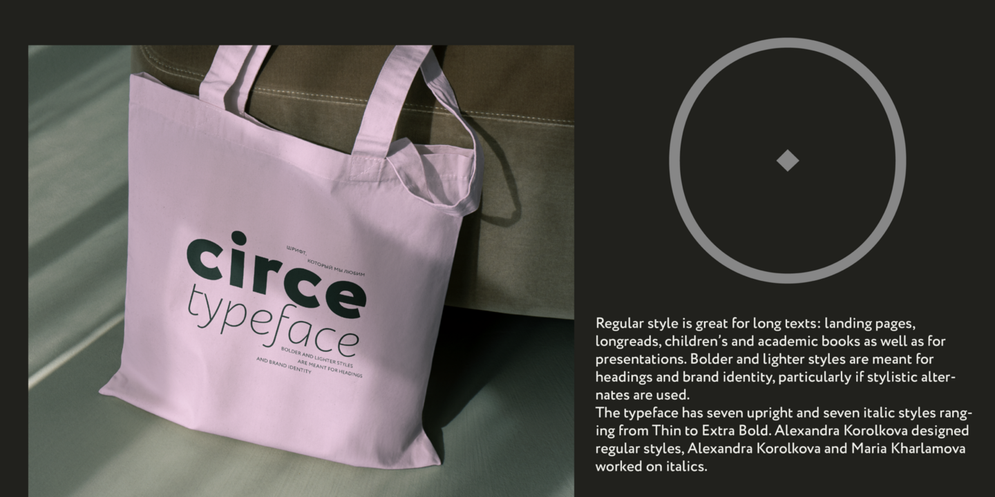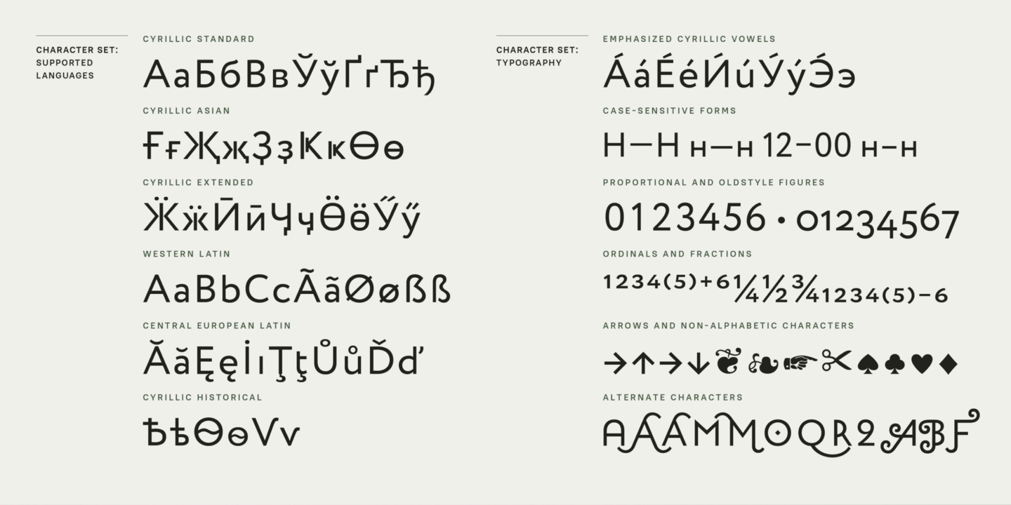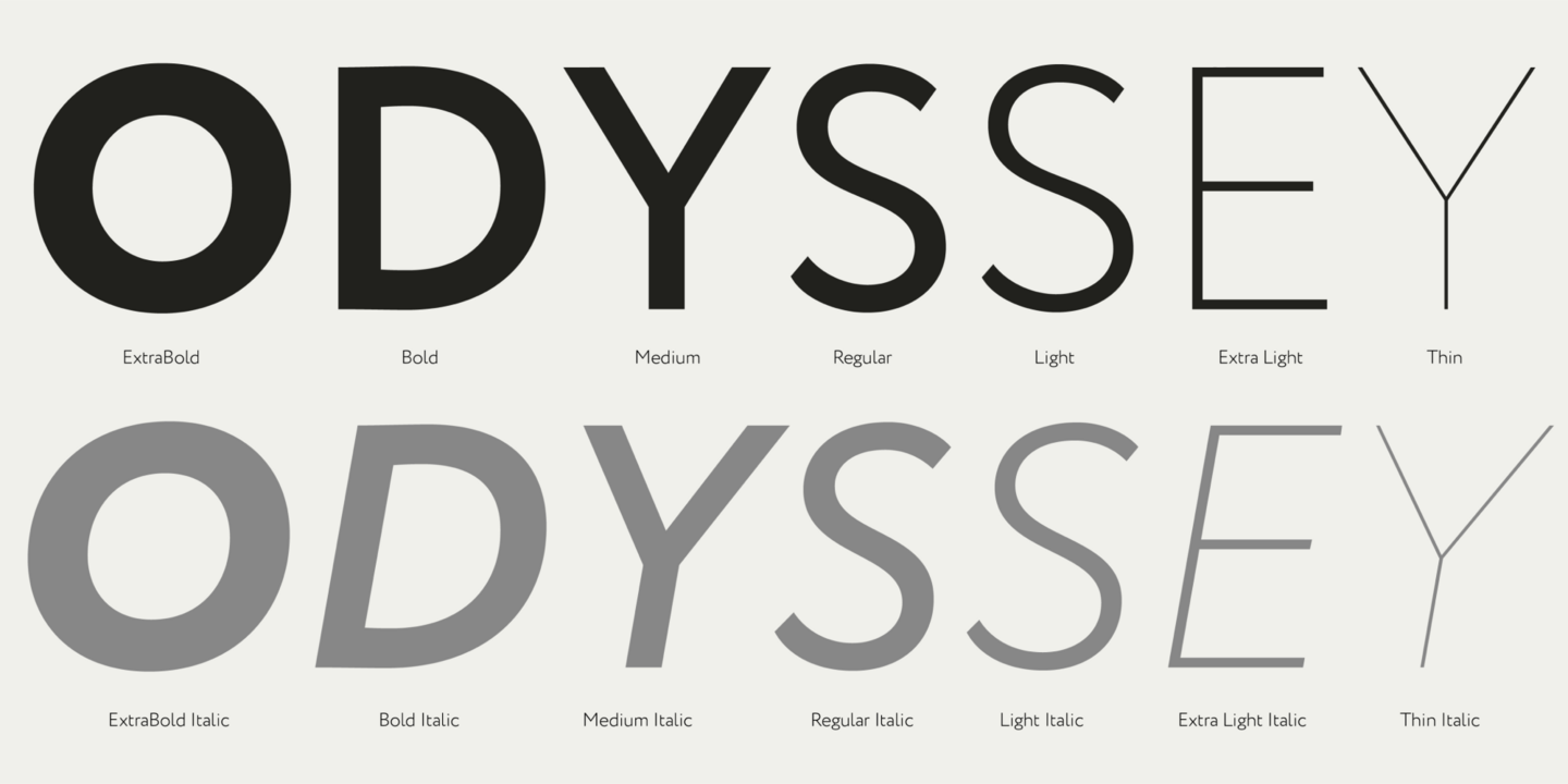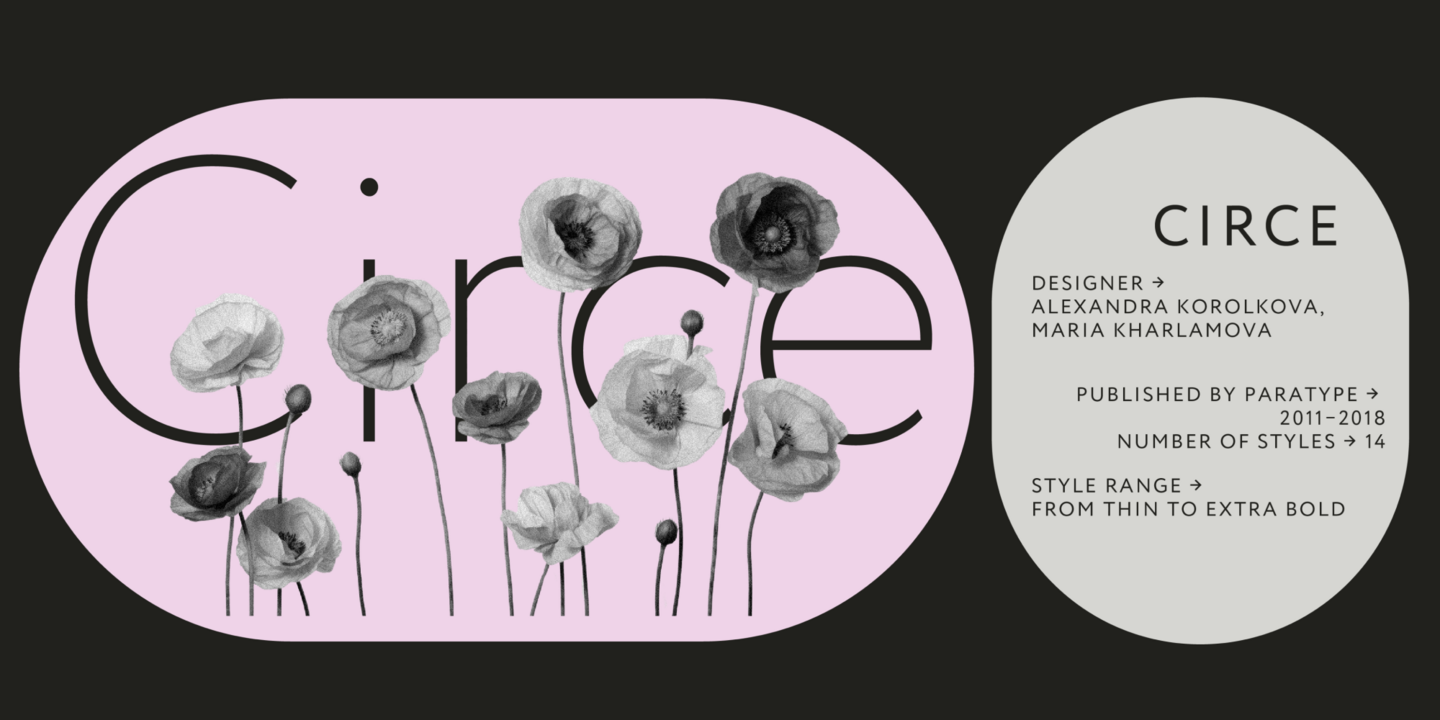 Circe—a friendly geometric grotesque with extensive customization options—is a typeface that features seven upright styles and seven true italics ranging from Thin to Extra Bold. The regular style works well for long texts, with bolder and lighter weights best for headings and branding. Each upright style contains over 2,500 glyphs and more than 30 OpenType features including stylistic alternates, small caps, old-style figures, arrows, and card suits. Circe also comes with a large set of swashes, allowing for easy character modification, and supports over 150 languages.