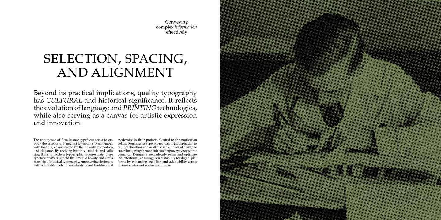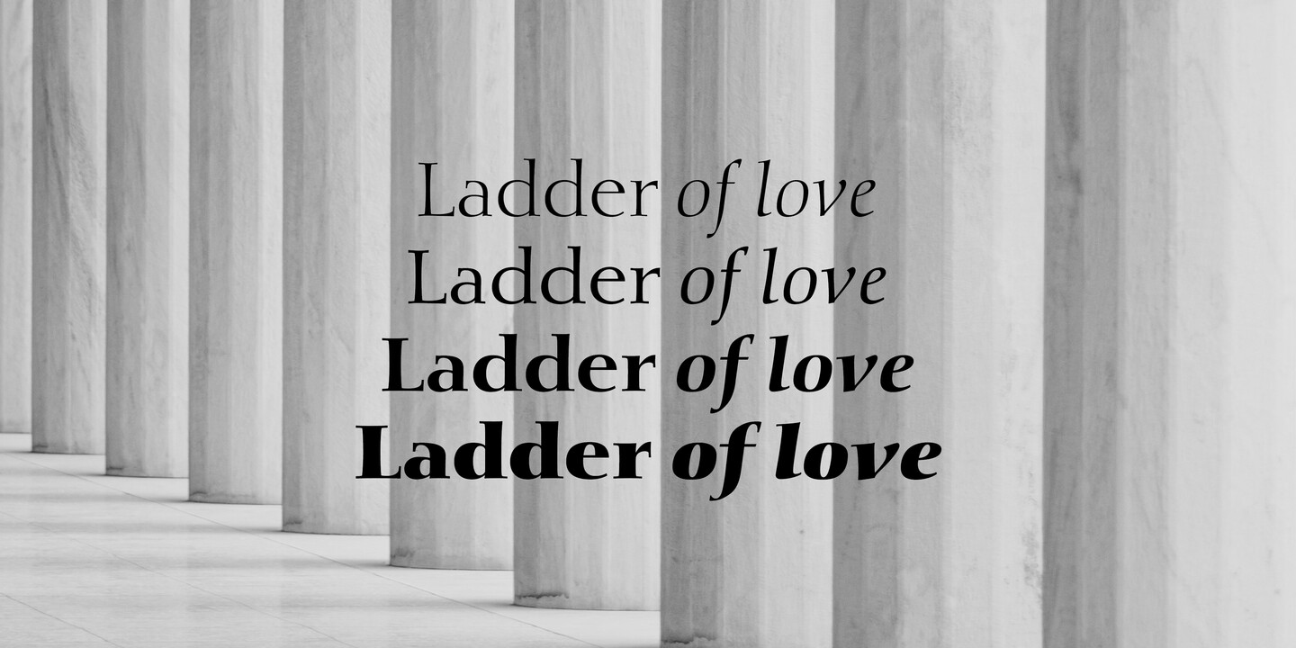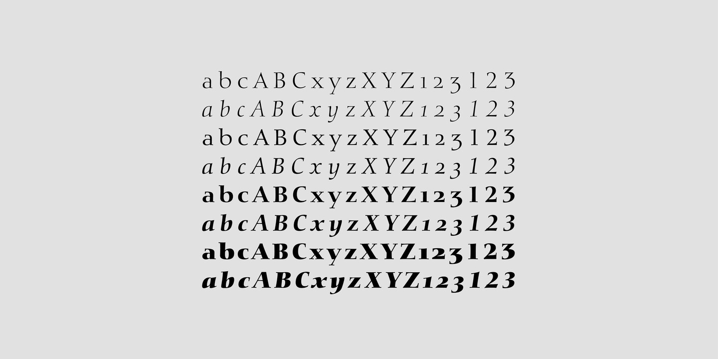 Rumor has it that Diotima is one of the most beautiful typefaces ever cast in metal. Decorated with the name of one of Plato’s protagonists from a dialogue about love, Gudrun created the design out of her calligraphic work for D. Stempel AG in 1948. And love is indeed a theme surrounding this typeface. In 1950 during an exhibition at the Staedel School in Frankfurt, the typeface caught the attention of one particular guest - Hermann Zapf - who was taken away by its mastery and its creator. A few years later, the couple married and continued their devotion for letters on a joint path. The most recent type family of Diotima Classic, co-created with Akira Kobayashi, includes four weights and is particularly suitable for festive and decorative designs.