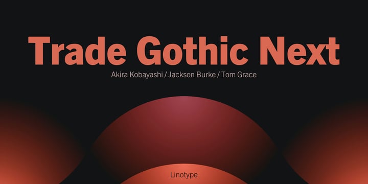 Jackson Burke – born 1908 in San Francisco, California, USA, died 1975 – type designer. Studied at the University of California in Berkely. 1949–63: director of type development for Mergenthaler-Linotype. Responsible for the development of the TeleTypesetting System (TTS) for magazines and for the development of fonts for native American languages. Fonts: (1948–60), Majestic (1953–56), Aurora (1960). * TYPOGRAPHY – An Encyclopedic Survey of Type Design and Techniques Throughout History by Friedrich Friedl, Nicolaus Ott (Editor), Bernard Stein, published by Könemann Verlagsgesellschaft mbH. Trade Gothic is a trademark of Heidelberger Druckmaschinen AG, which may be registered in certain jurisdictions, exclusively licensed through Linotype GmbH, a wholly owned subsidiary of Heidelberger Druckmaschinen AG.
