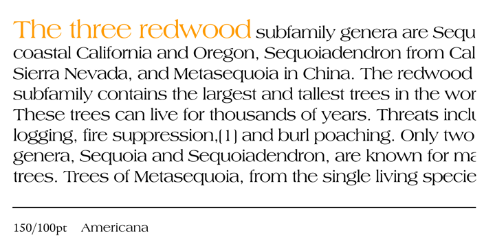 Richard Isbell, a contemporary graphic designer and type designer of Detroit, Michigan, created the fonts (1965) and (1981, with Jerry Cambell). He designed Americana in honor of the then upcoming U.S. Bicentennial. The most distinguishing feature about Americana is its extremely large x-height. The letter proportions are very wide, with short ascenders and descenders. Americana works well for short texts, such as headlines or ad copy.
