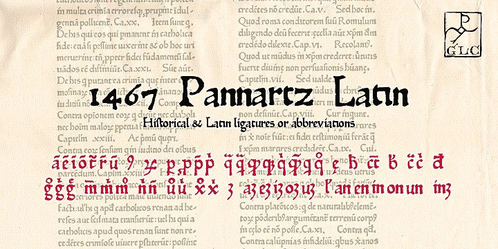 The present font contains all of the specific latin abbreviations and ligatures used in the original (about 54). Added are the accented characters and a few others not in use in this early period of printing. More…