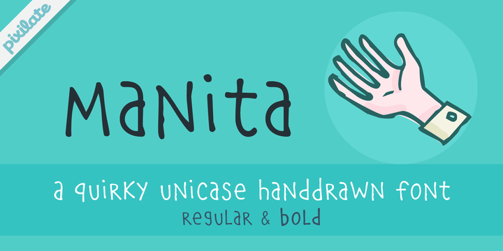 Manita is a quirky, humorous unicase face, reminiscent of comic lettering.