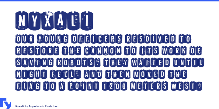 Nyxali is a damaged metal stamped font.